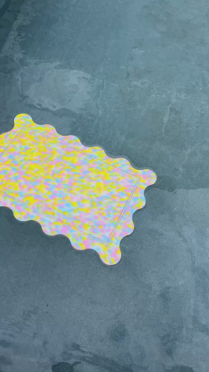 This soft rectangular board is designed for cutting, serving, or styling. One side features a shallow indent to catch juices, while the opposite side is smooth for versatile use.